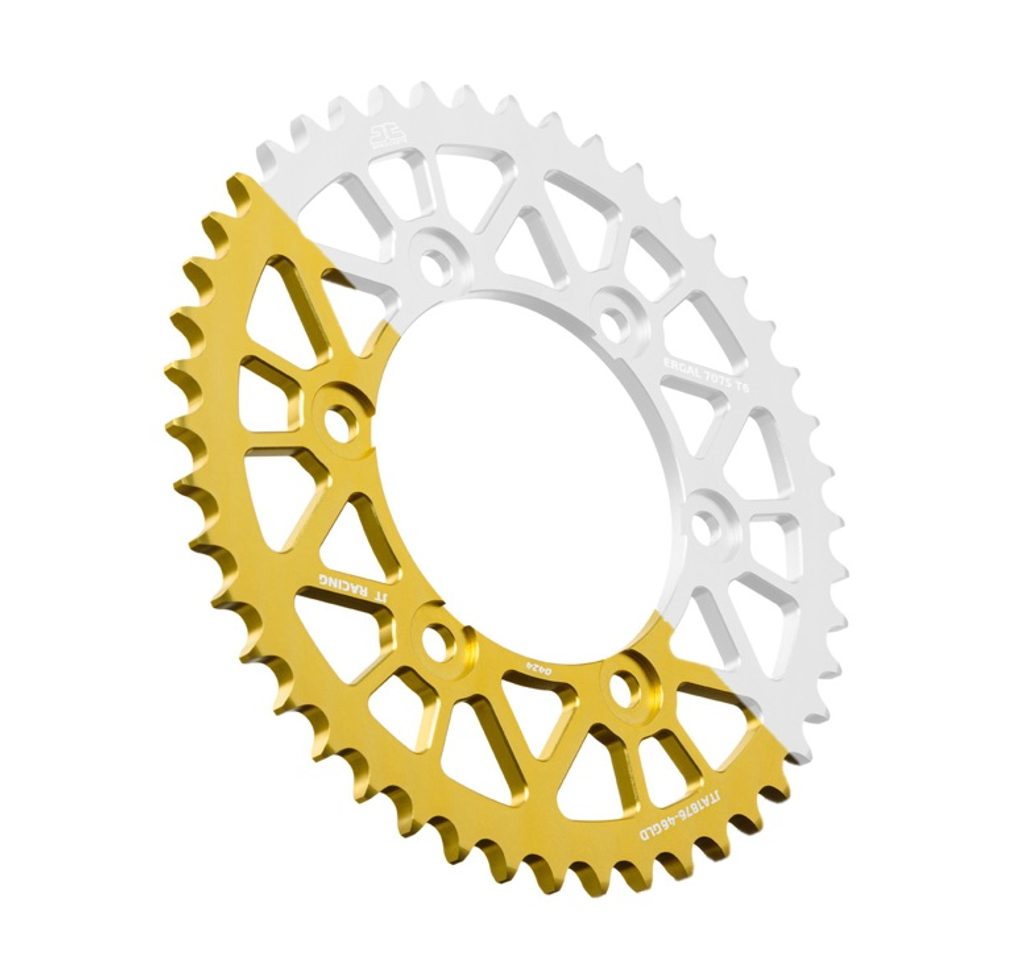 JT sprockets are made using only the best available materials. Aviation-grade 7075-T6 aluminium alloy for lightweight competition sprockets, SCM420 chromoly steel alloy for front sprockets, and we are the only sprocket manufacturer using the ultra-durable high carbon C49 steel for rear sprockets.