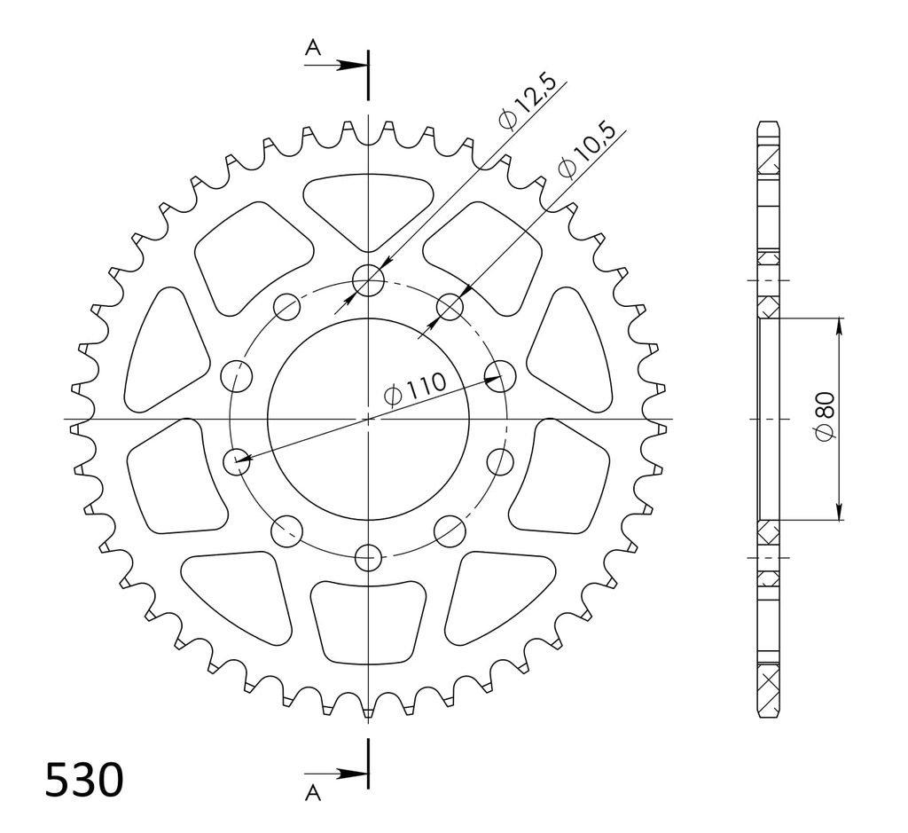 Aluminium-Ketten Rad SUPERSPROX RAL-1334:45-BLK schwarz 45T, 530