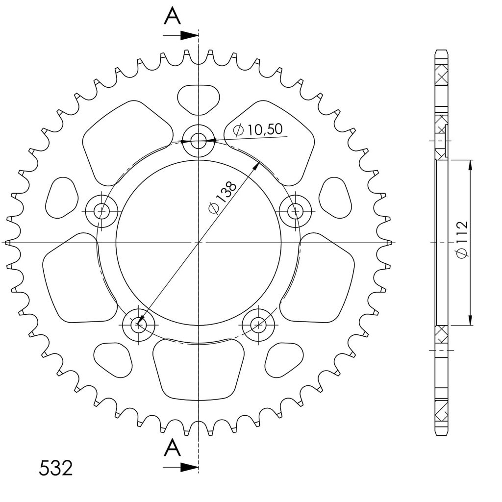 Aluminium-Ketten Rad SUPERSPROX RAL-1873:51-BLK schwarz 51T, 532