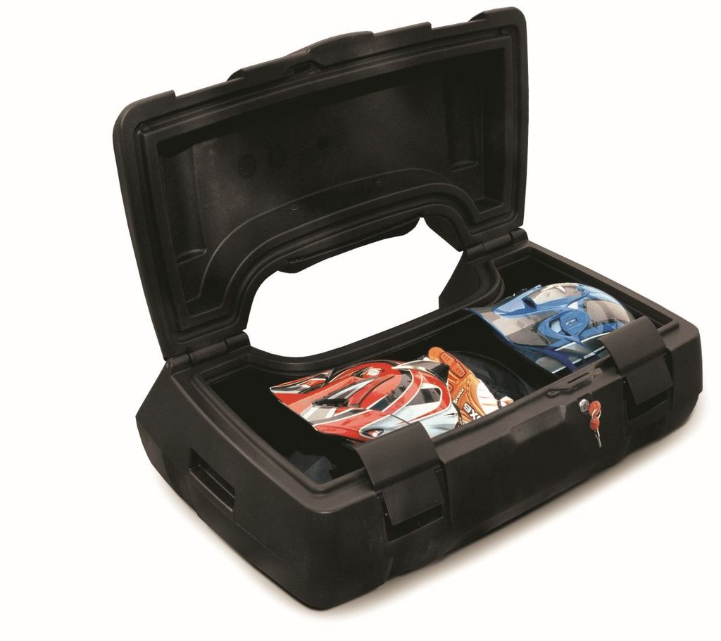 Quad case with capacity for two full face helmets. It includes a high security lock and a reflector.