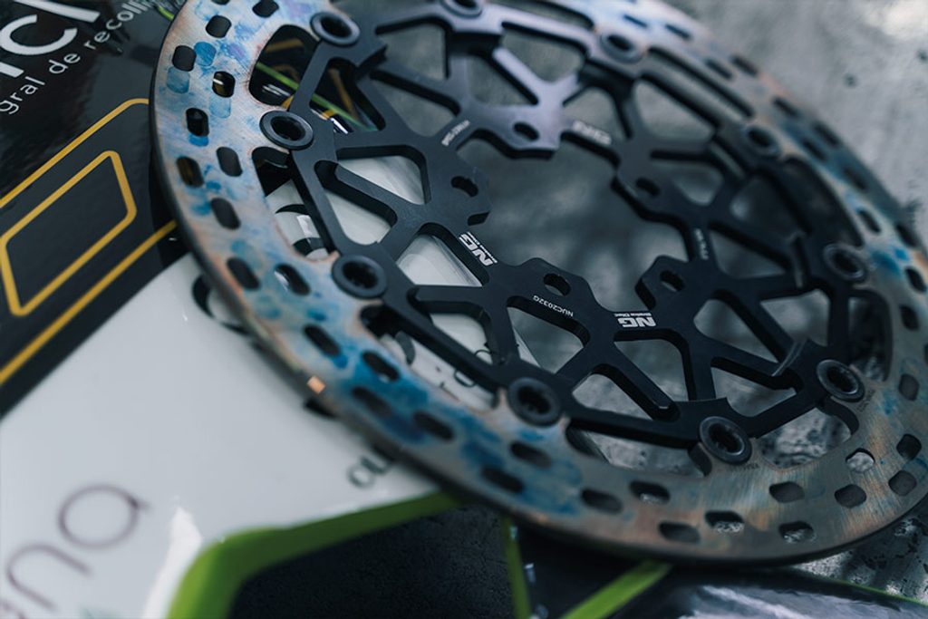 In terms of design, the new NG Race Star discs stand out from other discs both in terms of the colour of the braking surface and the orientation of the ventilation holes.