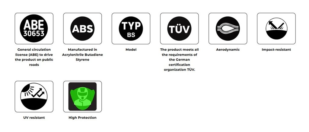 Manufactured with the highest technologies, its components are made of aluminum and/or ABS materials that are highly resistant to impacts and UV rays, in turn they are light and durable. The plastic parts have a built-in surface treatment that improves the behavior against chemical agents and in turn also offers total protection against UV rays. This layer avoids the need to have to paint the engine spoiler. The metal supports are made of 2mm metal, with anti-corrosion treatment, resistant and easy to install.