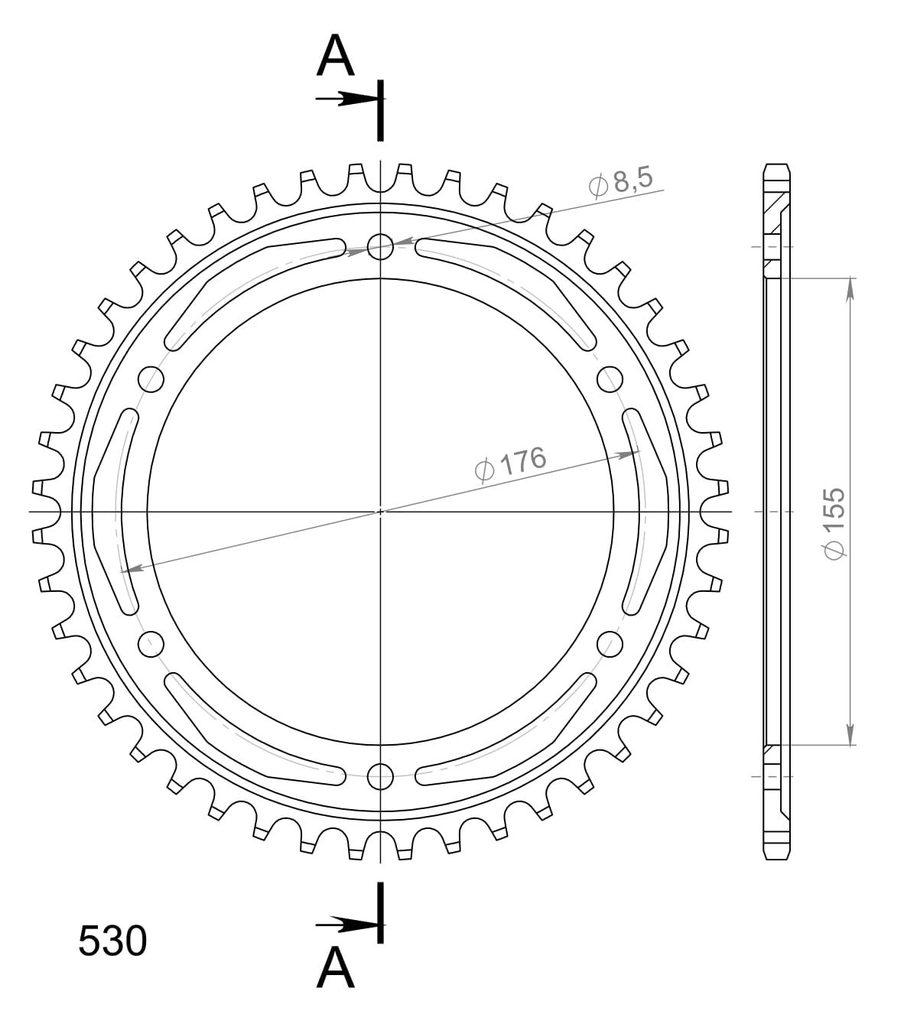 Stronger teeth for up to 10% longer chainkit lifetime. Rear sprocket 44z, chain 530. Mehr Informationen