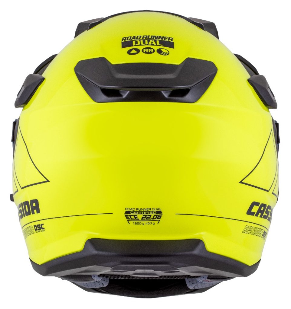 Motocross Helmet CASSIDA ROAD RUNNER DUAL yellow fluo/ black/ black matt peak L