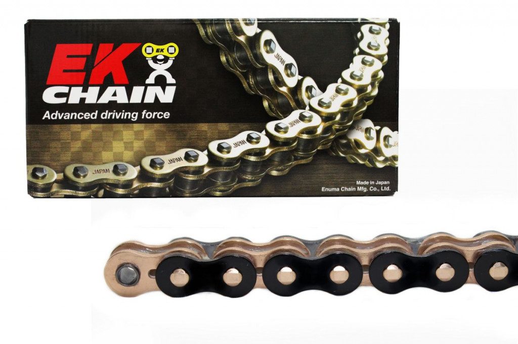 EK’s heavy duty QX-Ring chain is the ideal choice for 600cc-1000cc street bikes. Featuring side plate lightening holes, large diameter pins, and the premium friction reducing QX-Ring seal to ensure 1.5-2 times longer life than a standard O-Ring option.