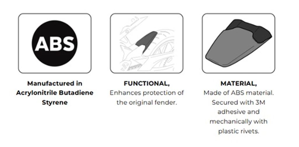 Add extra protection to your motorcycle with a Puig rear fender extension. It’s made of ABS material, highly resistant to any type of impact and painted in matt black to preserve the motorcycle’s look.
