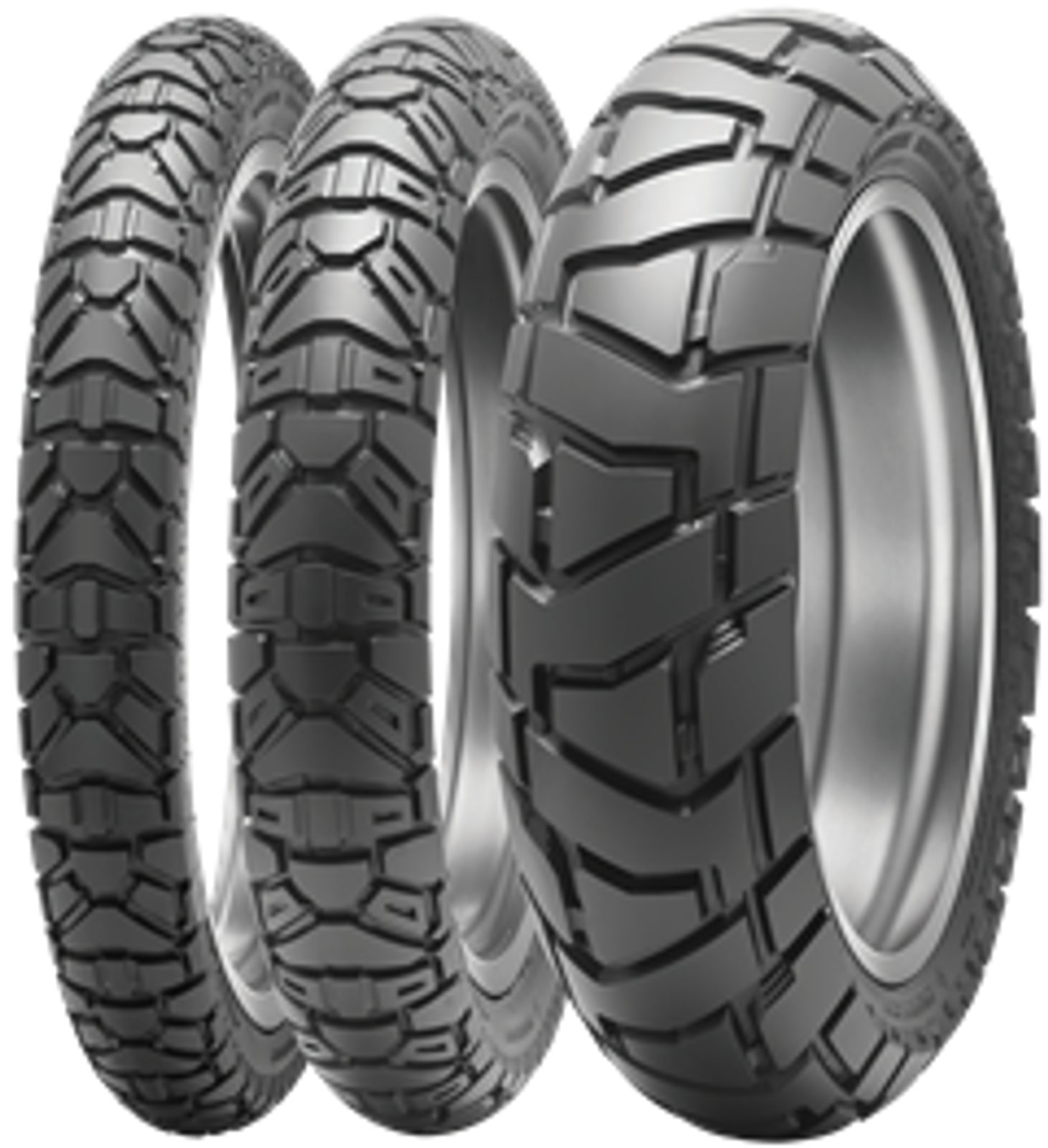 • The 19-inch sizes feature hollowed out knobs to create additional biting edges and knob flex for greater off-road traction. The 21-inch front tyre achieved Dunlop’s performance objectives without this additional detail, as the larger size of the tread blocks provided the desired level of traction without the need for hollowed out knobs