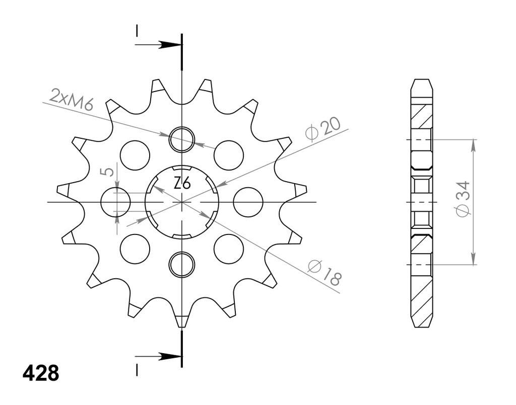 Every sprocket has weight reduction, with radial holes or radial slots (Forged models only) .