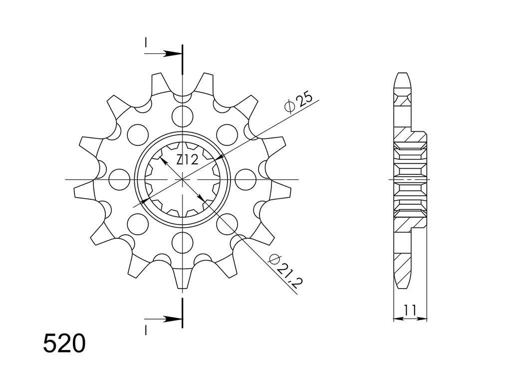 Every sprocket has weight reduction, with radial holes or radial slots (Forged models only) .
