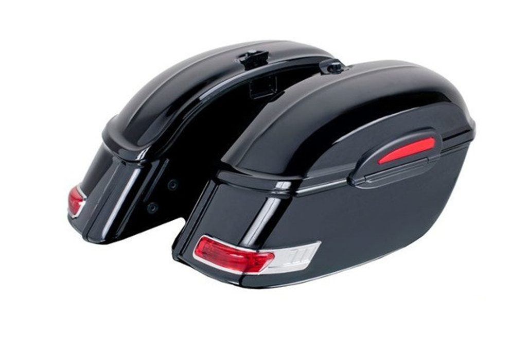 Both saddlebags can be mounted on the Customacces SV and KF-universal brackets.
