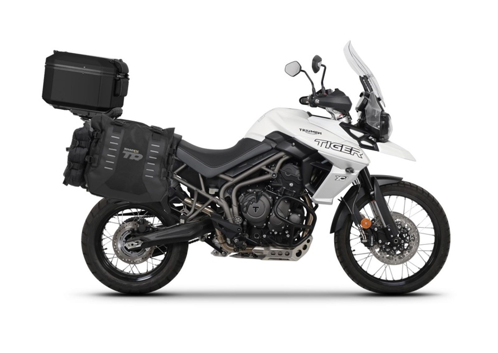 Set of SHAD TERRA TR40 adventure saddlebags and SHAD TERRA aluminium top case TR55 PURE BLACK, including mounting kit SHAD TRIUMPH TIGER 800