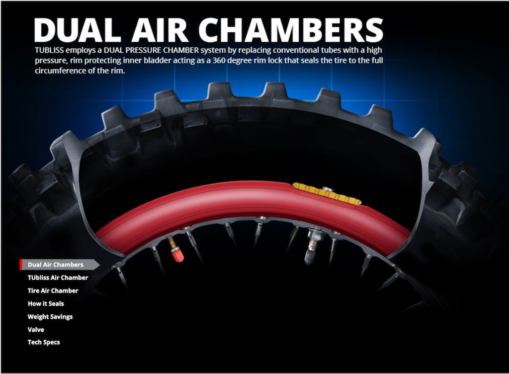 TUbliss replaces conventional inner tubes with a small red 100 psi insert that creates two different pressure zones inside the tire itself. This enables an incredible 100 PSI of rim protection, increased tire stability and eliminates pinch flats. In turn, this allows you to run very low tire pressure for massive gains in traction and a much plusher ride.
